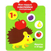 Мои первые наклейки 1+ "Фрукты и ягоды" Книжка учат ребенка, как взять наклейку и произвольно приклеить ее на картинку. Для детей от 1 года и старше.