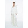 Блуза с бантомИзысканная блуза свободного силуэта выполнена из полупрозрачной летящей ткани с блеском. Модель имеет длинный рукав «епископ» и фиксацию на пуговицы в тон под планкой. Также изделие дополнено акцентными деталями в виде вороника-аскот, который можно повязать в форме банта, и широких манжет, фиксирующихся на одной пуговице. Данную модель блузы мы рекомендуем сочетать с классическими брюками кремовых оттенков и шерстяными юбками длины «миди», дополняя образ элегантными аксессуарами и женственными лодочками на высоком каблуке.