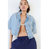 befree Блузка-топ льняная укороченная с запахом и V-вырезом