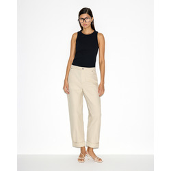 Хлопковые брюки с отворотами, бежевый