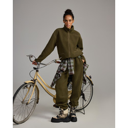 Прямые брюки с защипами, изо льна и района, зеленый оливковый