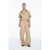 Широкие брюки из хлопкаБрюки свободного силуэта из натурального хлопка. Изделие имеет широкую боковую вставку ''лампасом'', пояс с эластичной тесьмой резинкой и боковыми карманами. Данную модель брюк мы рекомендуем сочетать с рубашкой из идентичной ткани, балетками или мюлями на невысоком каблуке и акцентными аксессуарами.