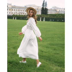 Платье с кружевными вставками, из тенселя и льна, белый