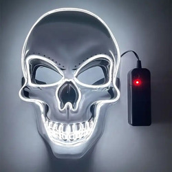 Карнавальная маска, Светодиодный череп, Белый, 16*23 см, 1 шт.