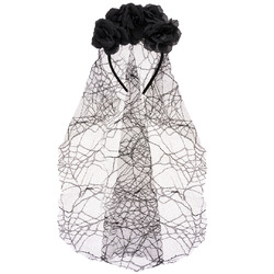 Ободок, Цветы на Хэллоуин (с фатой), Черный, 1 шт.