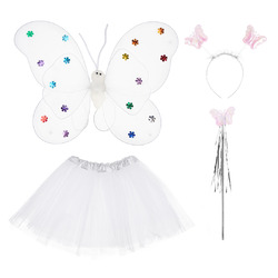 Набор (ободок, крылья, юбочка, волшебная палочка), Веселый Мотылек, Белый, 47*38 см, 1 шт.