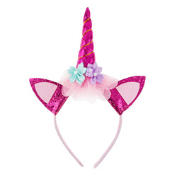 Ободок, Цветочный единорог, Фуксия/Розовый, с блестками, 1 шт.
