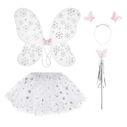 Набор (ободок, крылья, юбочка, волшебная палочка), Фея Снежинка, Белый, 47*38 см, 1 шт.