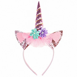Ободок, Цветочный единорог, Розовый, с блестками, 1 шт.