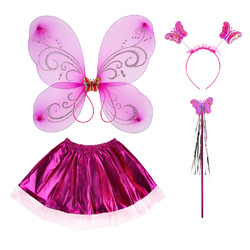 Набор (ободок, крылья, юбочка, волшебная палочка), Фея Бабочка, Фуксия, Металлик, 47*38 см, 1 шт.