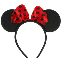 Ободок Мышка с красным бантиком, крупный черный горох, Черный, 1 шт.