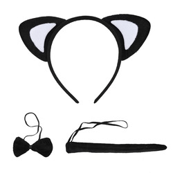 Набор (ушки, бантик, хвостик), Котик, Черный/Белый, 1 шт.