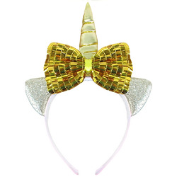 Ободок, Единорог с бантиком, Золото, 1 шт.