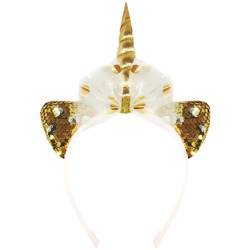 Ободок, Единорог с бантиком, Золото/Белый, 1 шт.