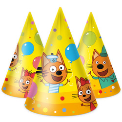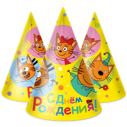 Колпаки, Три Кота, Веселый День Рождения, Желтый, 6 шт. в упак.