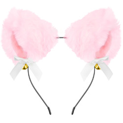 Ободок, Пушистые ушки - фурри, с бантиками, Розовый, 1 шт.