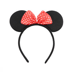 Ободок Мышка с красным бантиком, маленькие точки, Черный, 1 шт.