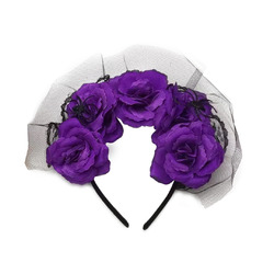 Ободок, Цветы на Хэллоуин (большие), Черный/Фиолетовый, 1 шт.