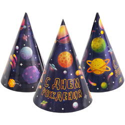 Колпаки, Космос, С Днем Рождения!, 6 шт. в упак.