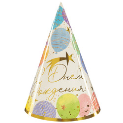Колпаки, С Днем Рождения! (воздушные шары), Металлик, 16 см, 6 шт. в упак.