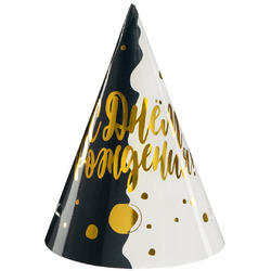 Колпаки, С Днем Рождения (сверкающие блестки), Металлик, 16 см, 6 шт. в упак.