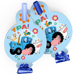 Карнавальные язычки гудки, Синий трактор, Веселое путешествие, 11 см, 6 шт. в упак.