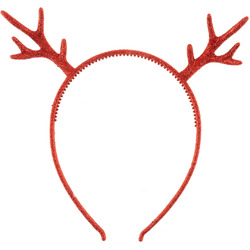 Ободок, Оленьи рожки, Красный, с блестками, 1 шт.