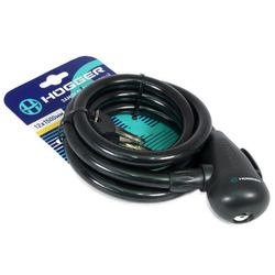 Замок велосипедный HOGGER, трос стальной, с ключами 12×1500 мм, черный, LKHG102.314KEY-BK