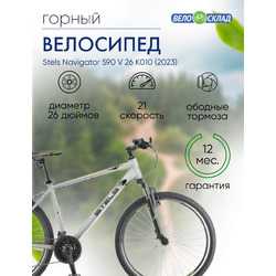 Горный велосипед Stels Navigator 590 V 26 K010, год 2023, цвет Серебристый-Зеленый, ростовка 16