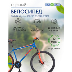 Горный велосипед Stels Navigator 500 MD 26 F020, год 2023, цвет Синий-Красный, ростовка 18