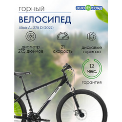 Горный велосипед Altair AL 27.5 D, год 2022, цвет Черный-Серебристый, ростовка 15
