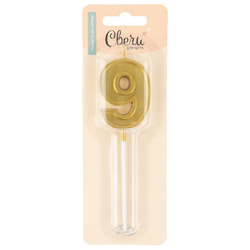 Свеча Цифра, 9 Чистая линия, на шпажке, Золото, 4,7*6,7 + 7 см, 1 шт. с держат.