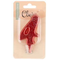 Свеча Цифра, 4 Овал, Красный, с блестками, 4*8 см, 1 шт. с держат.