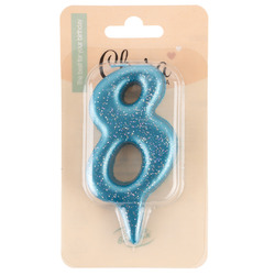 Свеча Цифра, 8 Овал, Синий, с блестками, 4*8 см, 1 шт. с держат.