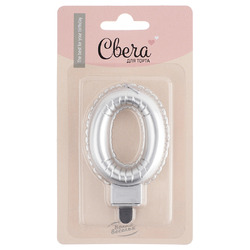 Свеча Цифра, 0 Воздушный шарик, Серебро, Металлик, 5*7 + 1 см, 1 шт. с держат.