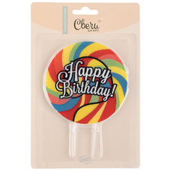Свеча Круг, Леденец, С Днем Рождения!, Радужный, 10 см, 1 шт. с держат.