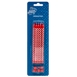 Свечи Белые точки, Красный, 15 см, 5 шт. с держат.