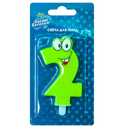 Свеча Цифра, 2 Глазки, Салатовый, 7,5 см, 1 шт. с держат.