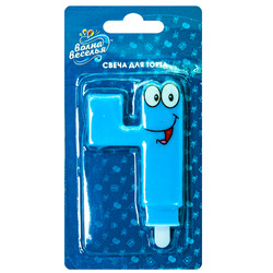 Свеча Цифра, 4 Глазки, Голубой, 7,5 см, 1 шт.