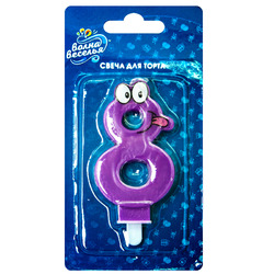 Свеча Цифра, 8 Глазки, Фиолетовый, 7,5 см, 1 шт.