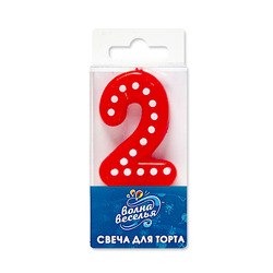 Свеча Цифра, 2 Белые точки, Красный, 3*4,5 + 1,5 см, 1 шт. с держат.