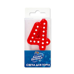 Свеча Цифра, 4 Белые точки, Красный, 3*4,5 + 1,5 см, 1 шт. с держат.