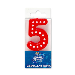 Свеча Цифра, 5 Белые точки, Красный, 3*4,5 + 1,5 см, 1 шт. с держат.