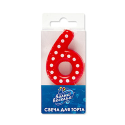 Свеча Цифра, 6 Белые точки, Красный, 3*4,5 + 1,5 см, 1 шт. с держат.