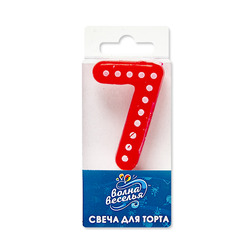 Свеча Цифра, 7 Белые точки, Красный, 3*4,5 + 1,5 см, 1 шт. с держат.