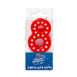 Свеча Цифра, 8 Белые точки, Красный, 3*4,5 + 1,5 см, 1 шт. с держат.