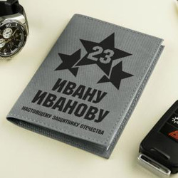 Обложка для автодокументов "Настоящему защитнику Отечества" серая