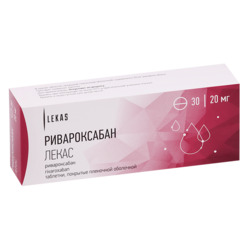 Ривароксабан Лекас 20 мг, 30 шт, таблетки покрытые пленочной оболочкой