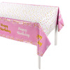 Скатерть одноразовая, Happy Birthday (звезды и конфетти), Белый/Розовый, Металлик, 137*183 см, 1 шт.Эффектная и красочная скатерть из металлизированной пленки поможет сделать торжество ярче и веселее, она отлично украсит праздничный стол и сохранит его в чистоте.