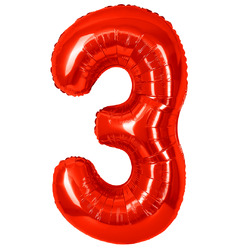 Шар (40"/102 см) Цифра, 3, Красный, Металлик, 1 шт. в уп.
